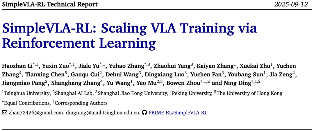 Github链接:https://github.com/PRIME-RL/SimpleVLA-RL