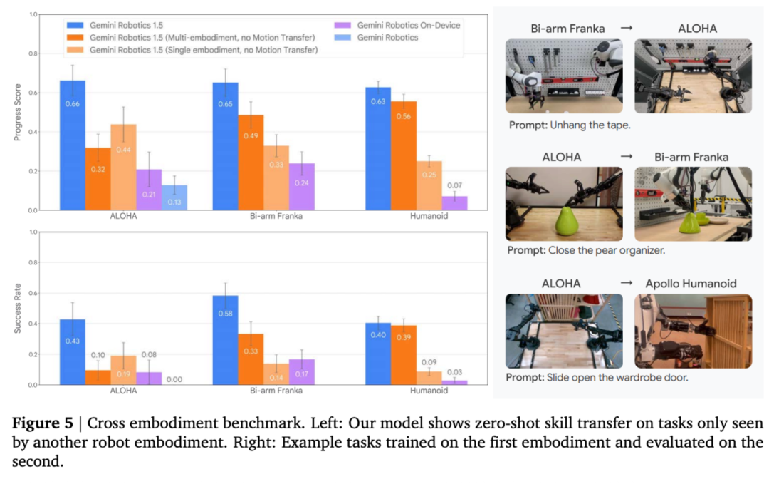尤其值得注意的是,在跨机器人迁移测试中,模型展现出了前所未有的零样本迁移能力。