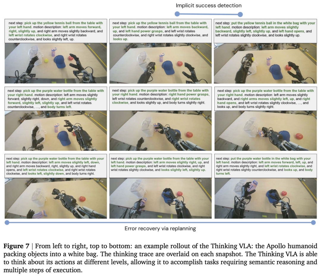 这种显性思考不仅让机器人更稳健,也让人类可以清晰看到它的思考过程,提升了可解释性。