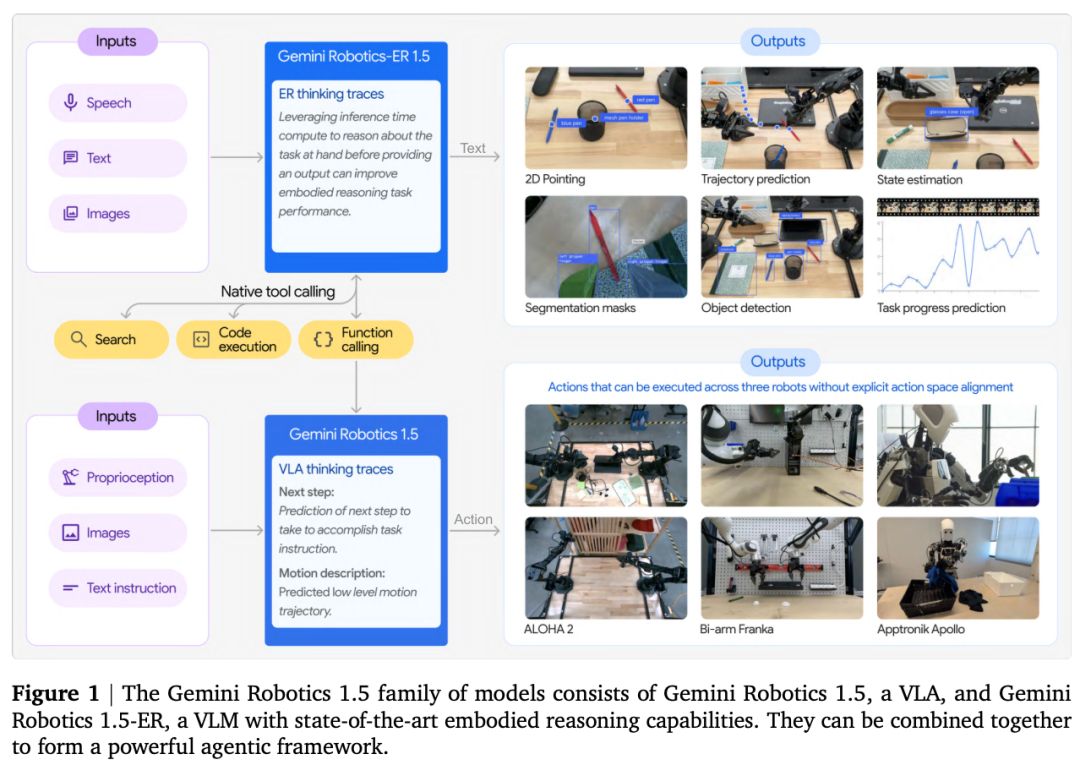 - Gemini Robotics 1.5(GR 1.5):负责动作执行的多模态大模型;