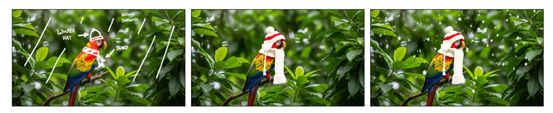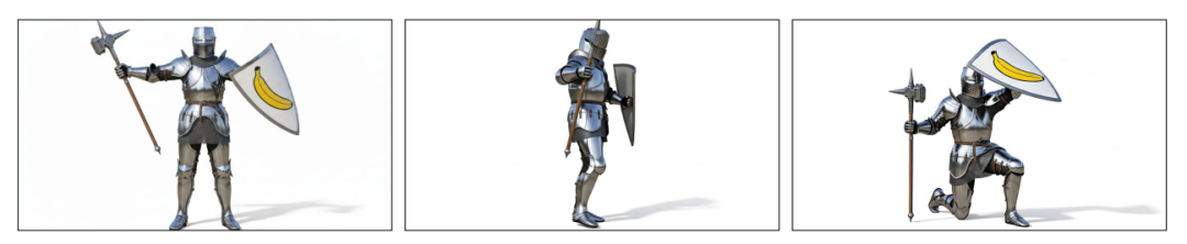 比如改改图(给小鸟加上围巾、置身雪景),或者搞3D和模拟(让骑士从朝前变成单膝跪地)。