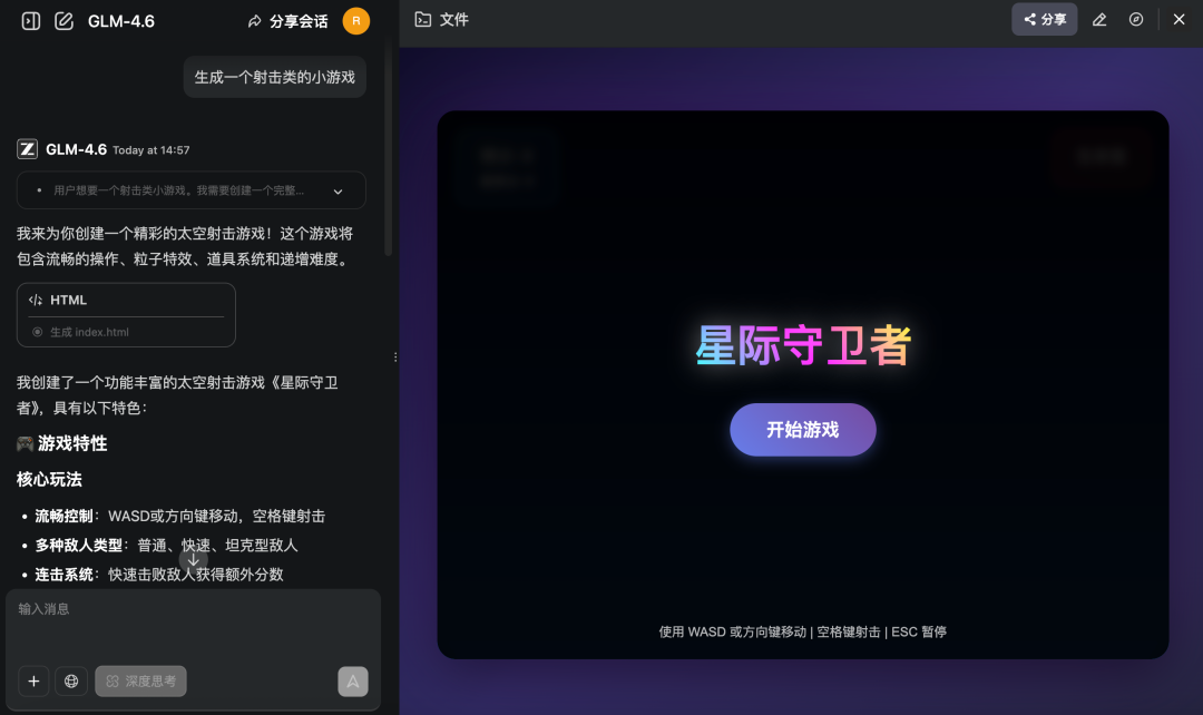 进阶一下,我们再让GLM-4.6再做一个交互动画: