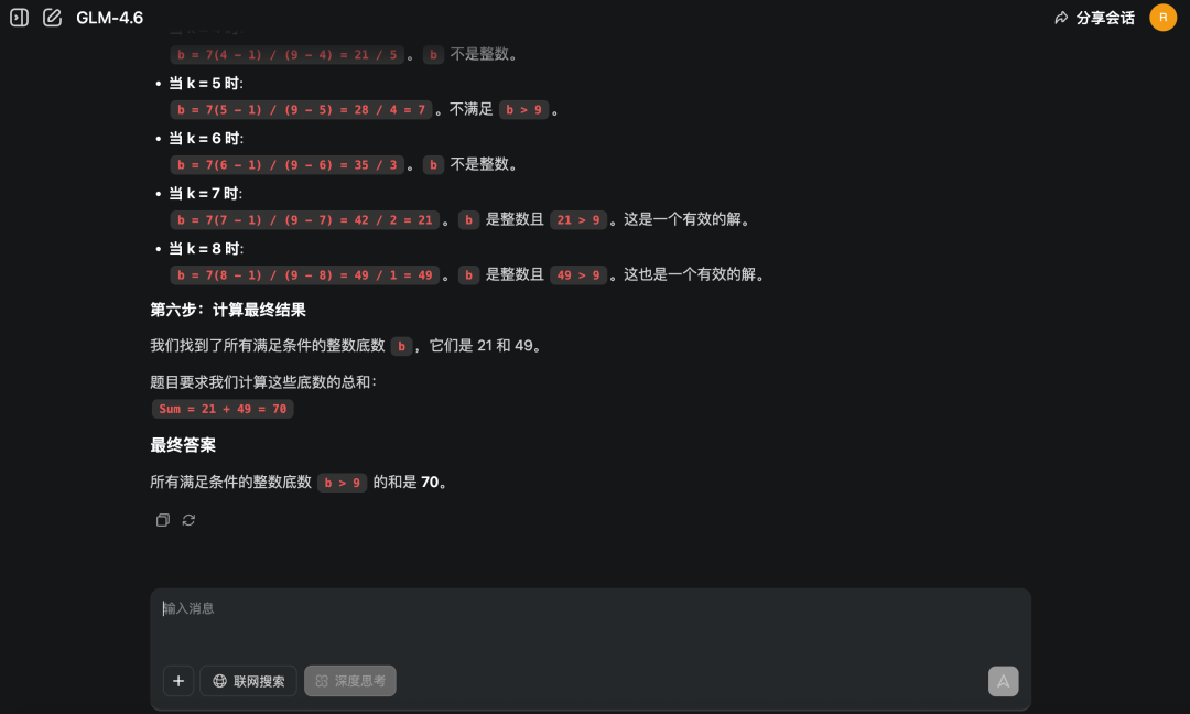 在编程能力之后,我们再来测试一下GLM-4.6的数学能力。