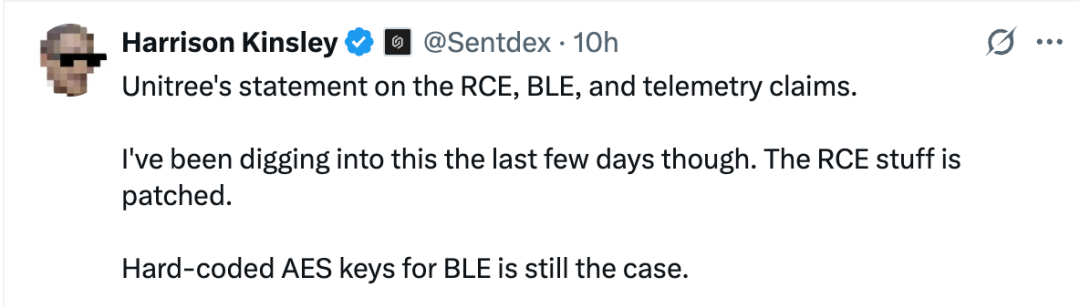 发现这一漏洞的安全研究者Andreas Makris和Kevin Finisterre表示,早在今年5月刚发现这个漏洞时,他们就把这件事告诉了宇树团队,希望宇树推进修复。