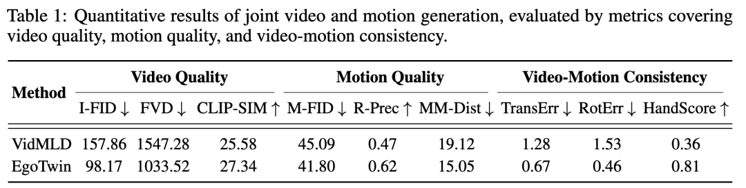 EgoTwin不仅显著缩小了跨模态误差,也为可穿戴交互、AR 内容创作、具身智能体仿真等应用提供了可直接落地的生成基座。