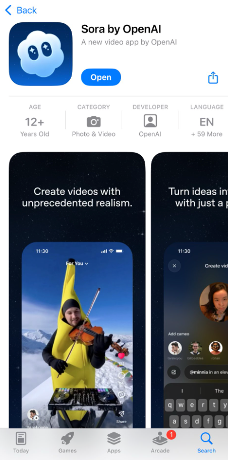 在这款应用里,用户能创作AI内容、对他人生成的AI内容进行二次创作、在可自定义的信息流里发现新视频,还能通过“客串(cameos)”功能,经身份验证和捕捉形象,让自己或朋友进入Sora生成的环境。
