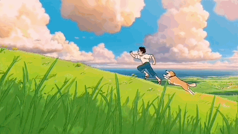 Prompt:in the style of a studio ghibli anime, a boy and his dog run up a grassy scenic mountain with gorgeous clouds, overlooking a village in the distant background.(以吉卜力工作室动画风格呈现,一个男孩和他的狗朝着长满青草的风景优美的山间奔跑,山间伴有绚烂的云彩,远处背景中还能望见一个村庄)