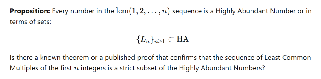 由于发现前面算出来的最小公倍数们,居然刚好也是高度丰数,所以问题来了——会不会所有的最小公倍数,永远都在高度丰数的行列里?(即子集)