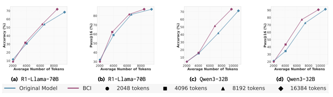 由上图可以看出,BCI可以在使用更少token的情况下,就能达到与基线相当或更优的性能。