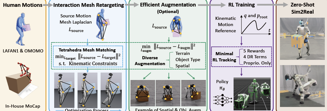 OmniRetarget使强化学习策略能够在复杂环境中学习长时程的“移-操一体”(loco-manipulation)技能,并实现从仿真到人形机器人的零样本迁移。