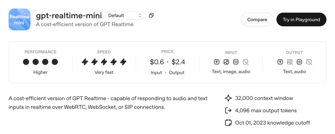 另外推出更小的语音模型GPT-Realtime-Mini,是两个月前推出的语音模型的更小、更便宜的版本,拥有相同的语音质量和表现力,价格低70%。