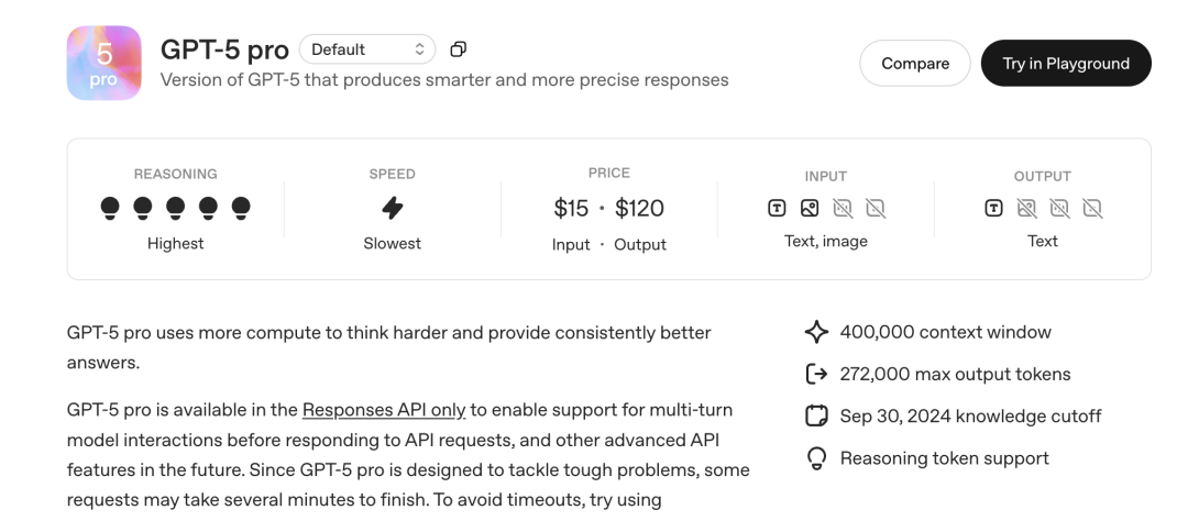 OpenAI还宣布开放GPT-5 Pro的API调用。