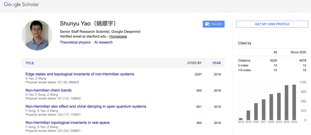 2018年,姚顺宇在《Physical Review Letters》(国际物理学领域最顶级的学术期刊之一)发表高水平论文,首次在国际上给出了关于非厄米系统的拓扑能带理论,不仅准确预测了相关现象,他还定义了两个新的物理概念。