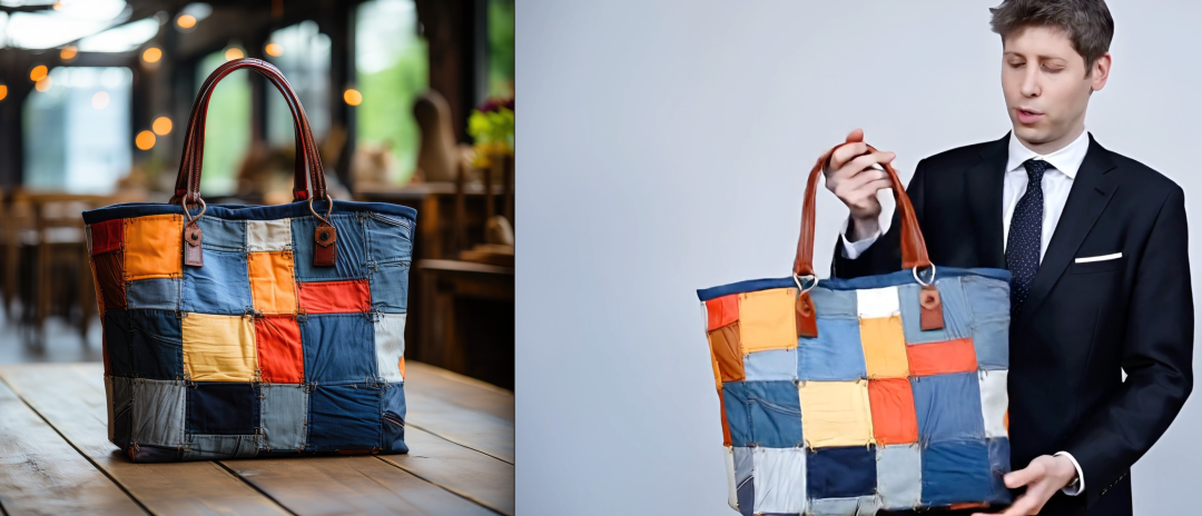Sora 2依旧的优势在于奥特曼说着中文介绍着这款包包,但……
