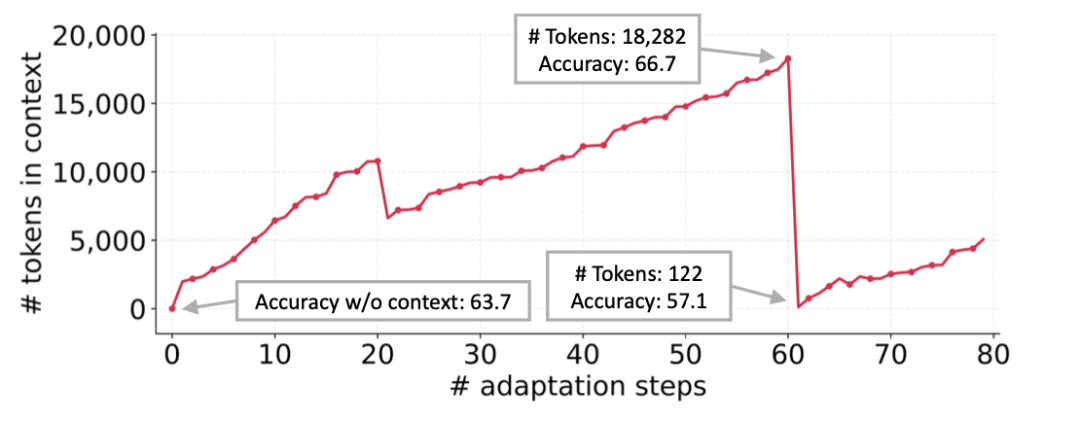 反复修改输入时,模型会把之前积累的有用信息越改越短、越改越没用。比如原本有1.8万个token的实用策略,准确率为66.7,改一次就剩122个token,效果却下降到57.1。