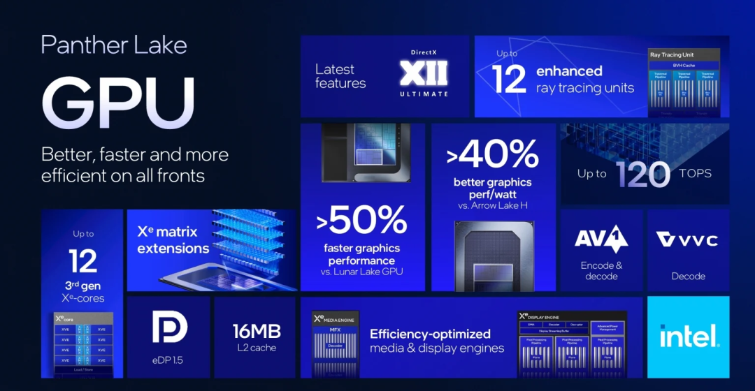 集成了全新的Xe3“Celestial”图形架构,性能比Lunar Lake的Xe2 GPU高出50%以上。