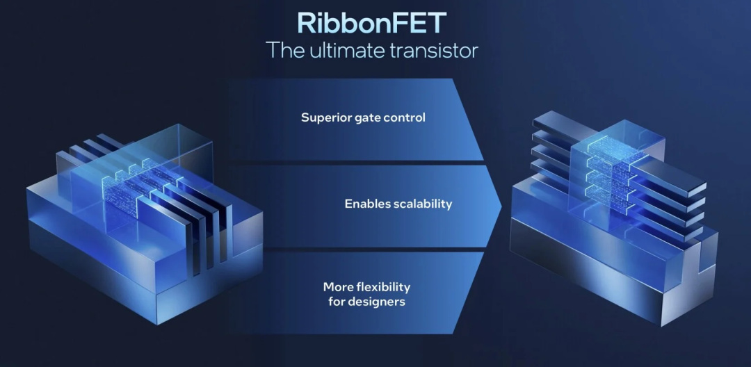 RibbonFET,是英特尔十多年来首个全新的晶体管架构,可实现更高效的开关控制,从而提升性能和能效。