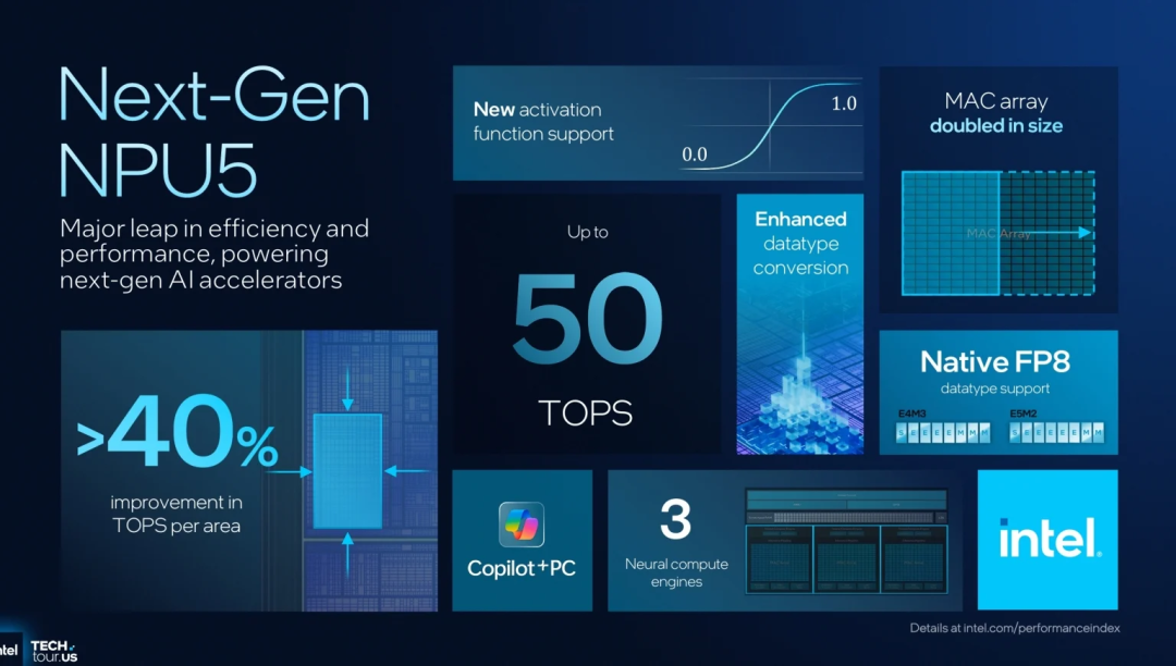 Arrow Lake走性能路线,还是使用外部内存,核心数量更多,但GPU架构比较老旧,AI算力也达不到微软Copilot+ PC的要求。