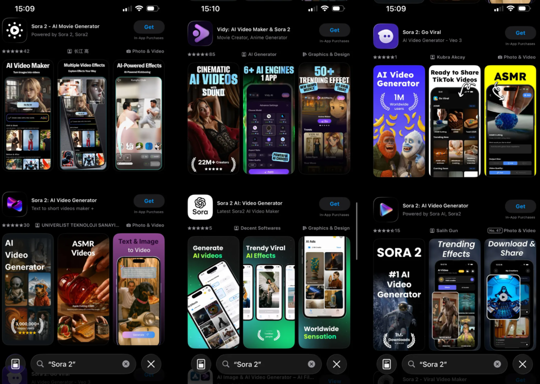 有意思的是,与此同时,Sora APP的盗版也迅速衍生,在应用商店里可以说是泛滥成灾。