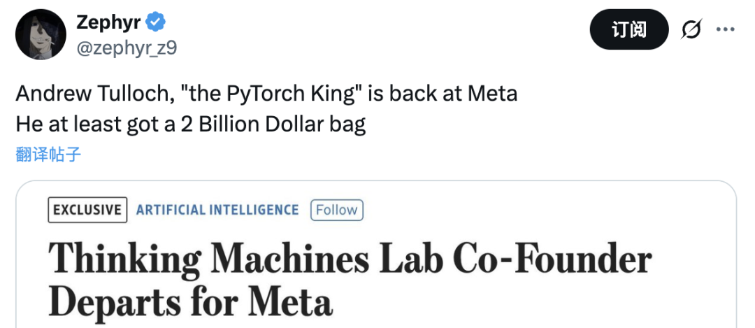有意思的是,这时Meta挖人的白热化阶段早已过去,内部改组也搞出了一地鸡毛,Tulloch这时选择入职,会是基于一种什么样的考虑?