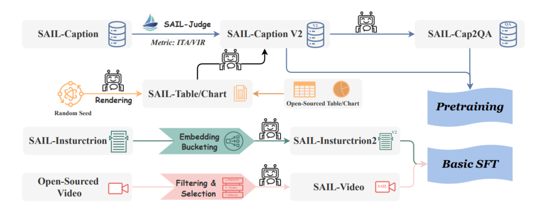 SAIL-VL2设计了一套全自动数据pipeline,从“质量筛选”与“类型扩展”两大方向提升数据价值: