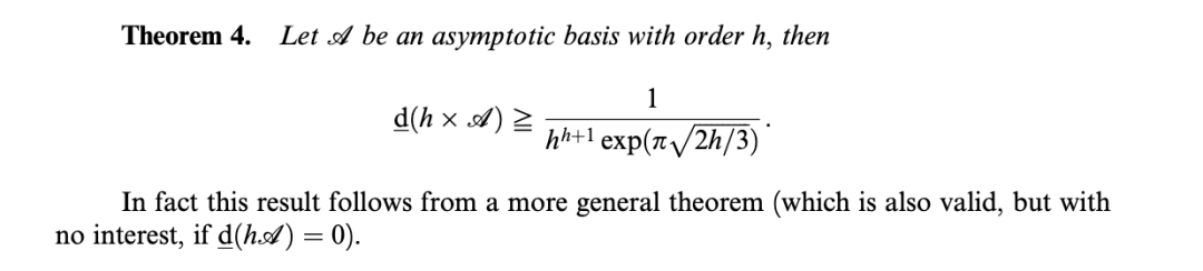 设A⊆N是一个r阶基(即每个足够大的整数都能表示为A中r个元素的和)。那么,能表示为A中恰好r个不同元素之和的整数集合,是否一定具有正的下密度?