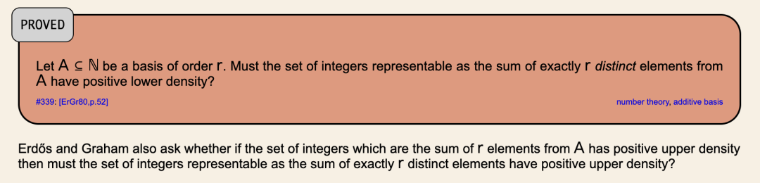 具体来看,埃尔德什问题#339是数论中加法基方向的一个经典问题,表述为: