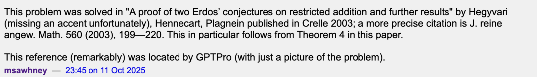 尤其值得关注的是,GPT-5 Pro仅通过埃尔德什问题#339的图片,直接定位到了关键文献。