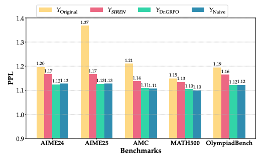 为突破这一瓶颈,团队提出了选择性熵正则化方法(SIREN),通过划定探索范围、聚焦关键决策、稳定训练过程的三重机制,实现了对探索行为的精准调控。实验证明,该方法不仅在多项数学推理基准上取得了显著性能提升,更重要的是,它让模型的探索过程变得更加高效与可控。