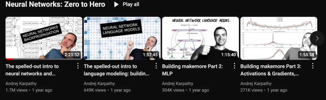 包括他自己的早期博客文字分享和后来的一系列Youtube视频教程,他还与李飞飞合作开设的的斯坦福大学首个深度学习课程CS231n《卷积神经网络与视觉识别》。