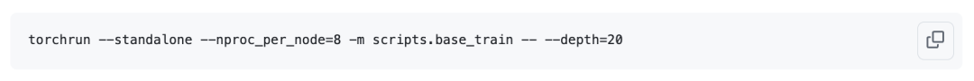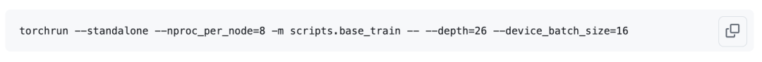 你需要在base_train.py的预训练阶段传入深度参数。例如,要得到一个CORE指标约为0.25、性能接近GPT-2的模型,尝试depth=26是个不错的选择。
