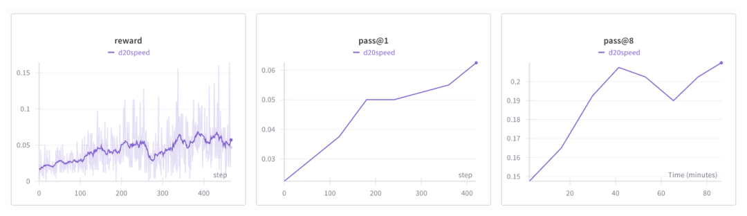 只针对GSM8K进行了强化学习,这也是为什么用-a标志将评估也限制在GSM8K上。由于强化学习就像通过吸管汲取监督信号,这个过程会运行相当长的时间。