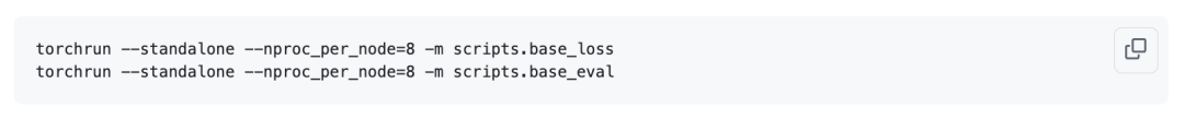 在这里,通过scripts/base_train.py脚本在8块GPU上启动训练。我们正在训练一个有20层的Transformer。默认情况下,每块GPU在每次前向/反向传播时处理32行、每行2048个tokens的数据,优化器每一步总共处理32×2048=2¹⁹=524,288≈0.5M个tokens。