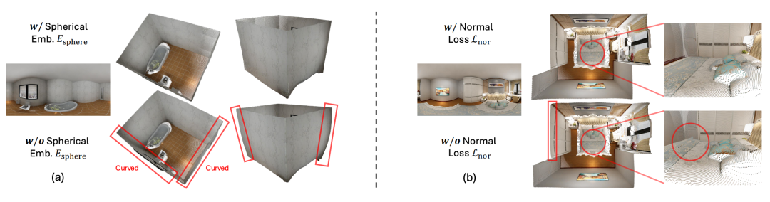 然而,仅有沉浸式视觉(二维)体验是不够的。全景图中的高质量深度 (3D) 信息对3D场景重建/生成、物理模拟、世界模型等更高级的应用至关重要。