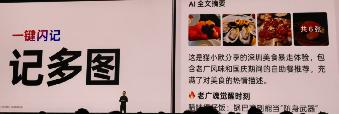 全新的一键闪记,只需按一下按键,就能将多张图一次性保存,甚至无需翻阅,而且图片中的关键信息和文字也会被提取并转化为记忆。