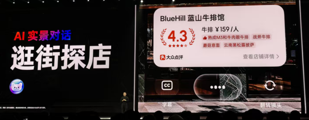 同时还和大众点评合作,把“指哪答哪”拓展到了探店场景。