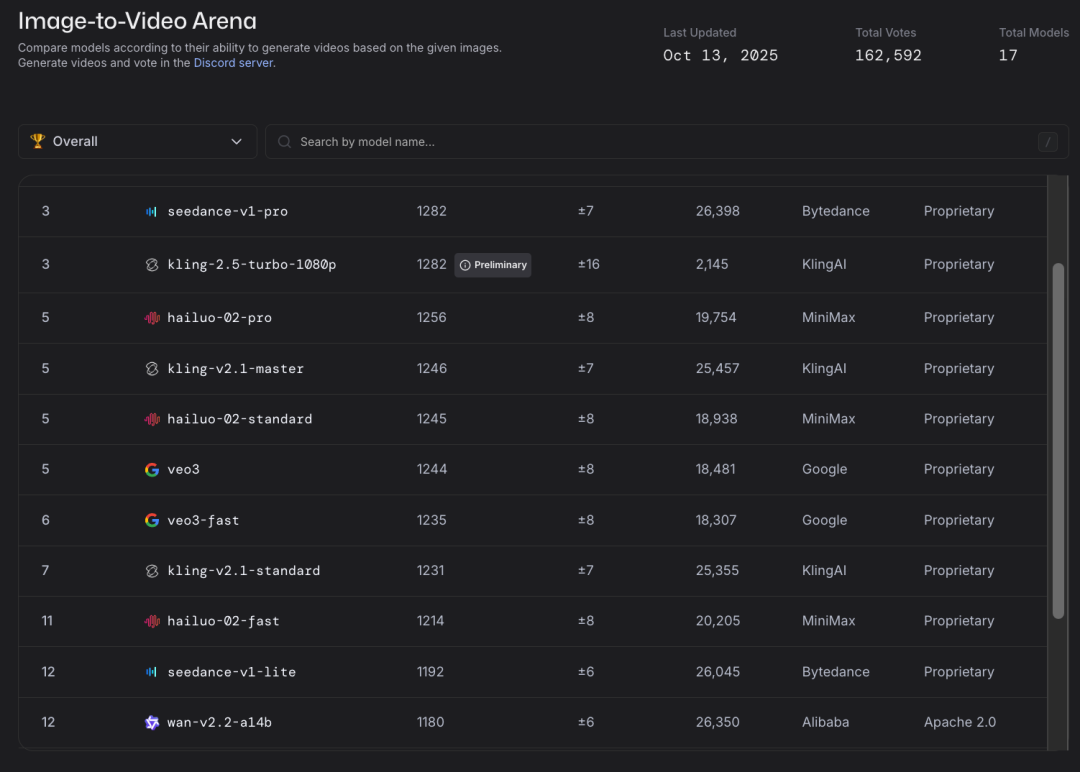 值得注意的是,在这个领域,国产闭源模型同样表现不俗,Kling-2.5、Seedance-v1-pro、Hailuo-02等都位居榜单前列。