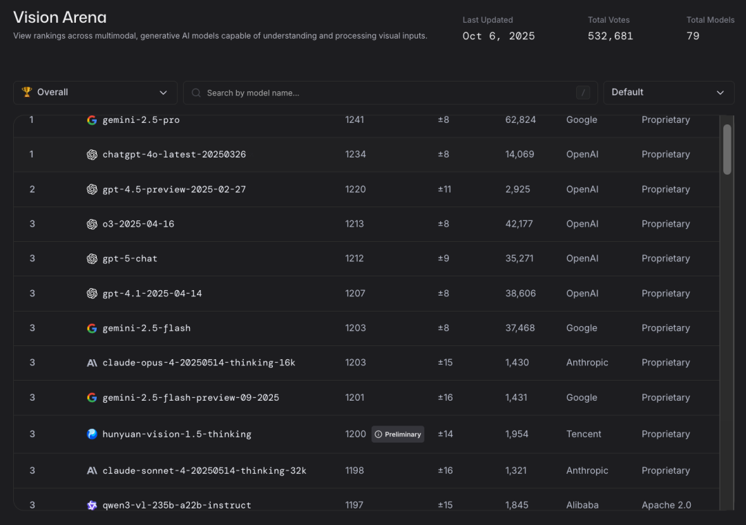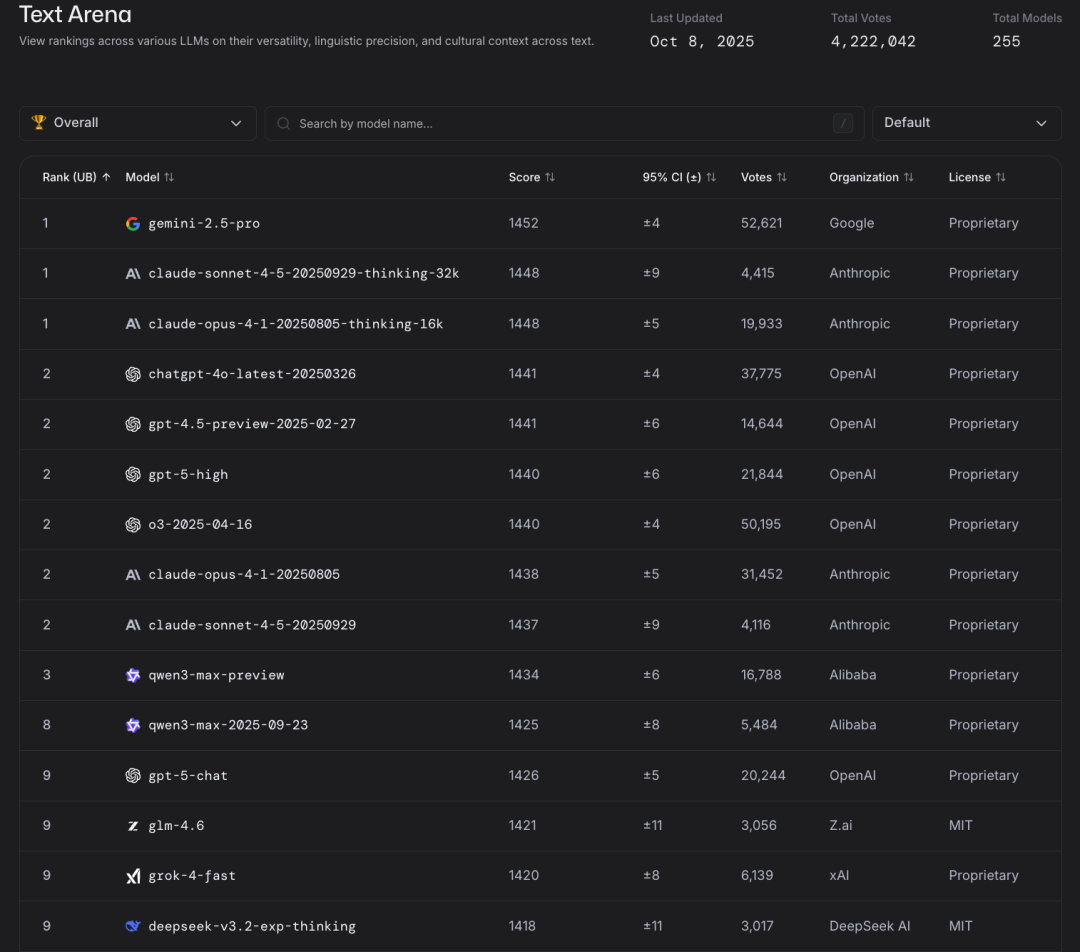 更具体的情况,可以在LMArena公开榜单中窥见一二。