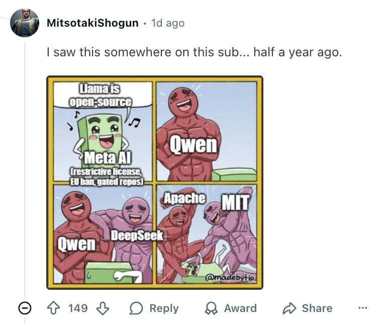 比如半年前Llama 4翻车时的梗图,就又被挖了出来:
