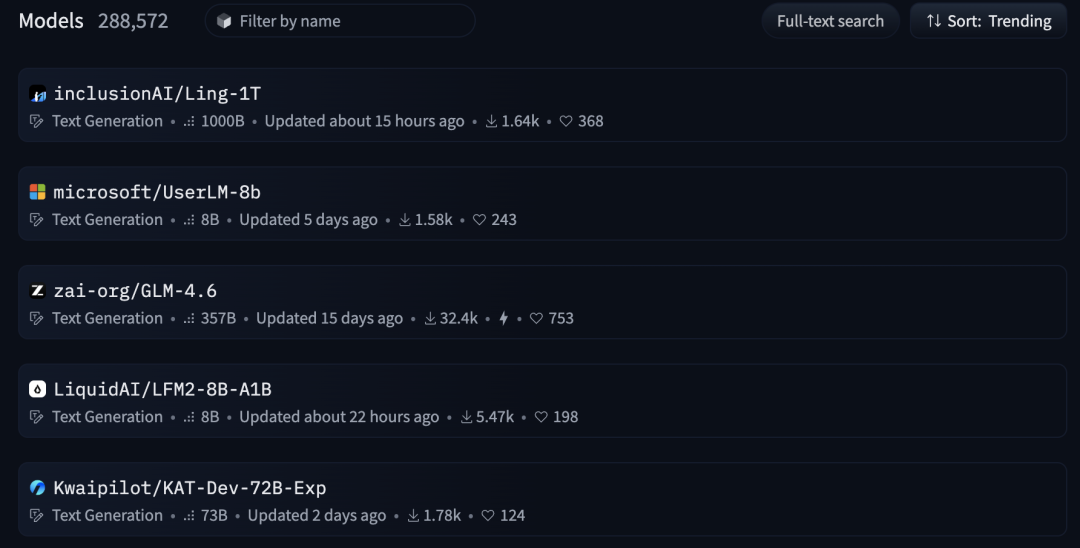 在趋势榜中,蚂蚁的Ling-1T、智谱的GLM-4.6,都是当下最受关注的开源模型。