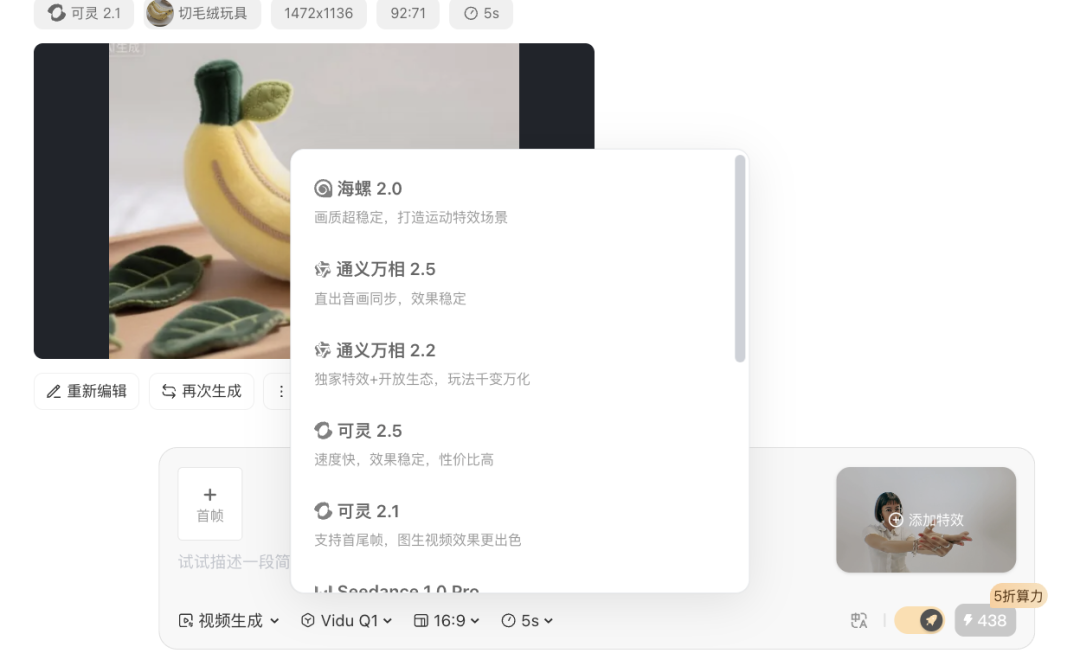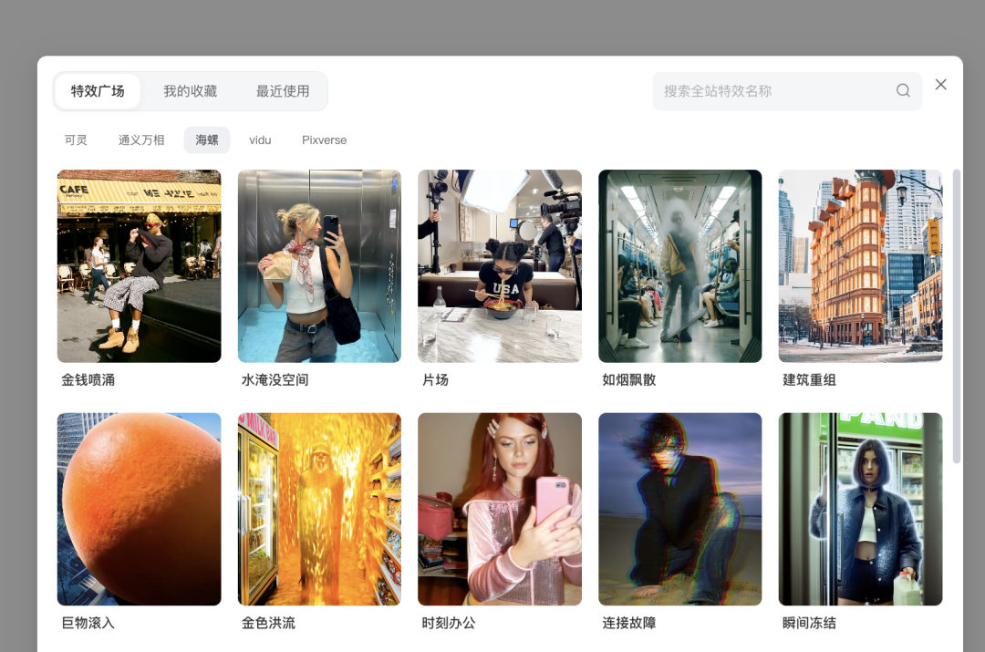 但个人体验下来,这次最有看头也是最想和大家分享的,当属它视频生成页面的添加特效功能,可以直接在视频生成板块“添加特效”。