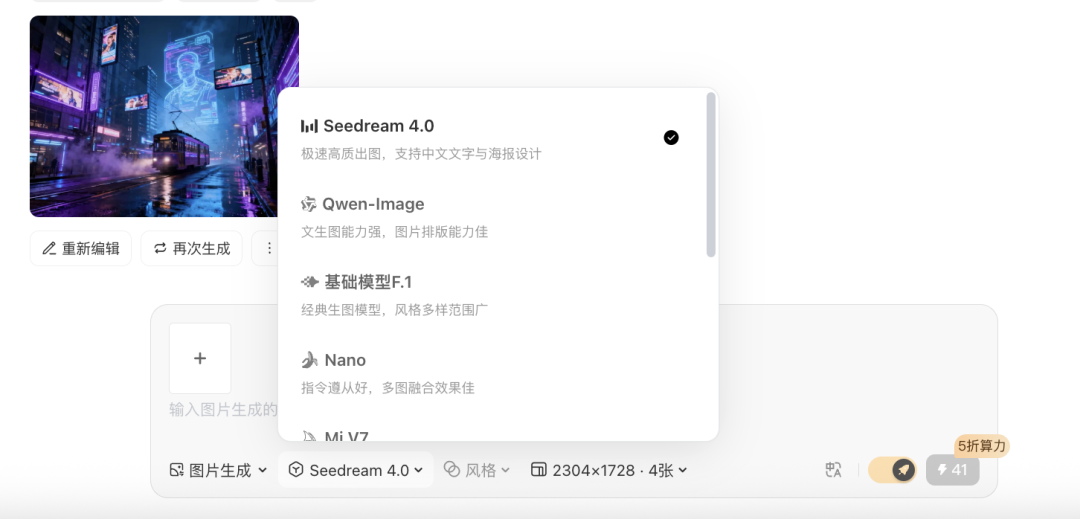 覆盖插画、摄影、电商、海报、IP等各类视觉风格,其实本质上是把“模型选型”流程视觉化了。