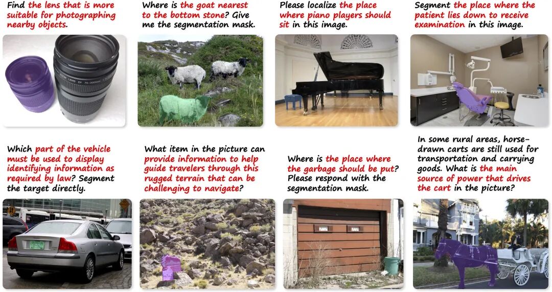 得益于其端到端掩码生成能力以及语言与视觉模块的深度协同,该模型能够在理解复杂问题的基础上,精准地定位出问题所指向的目标区域,并将其用于帮助推理。