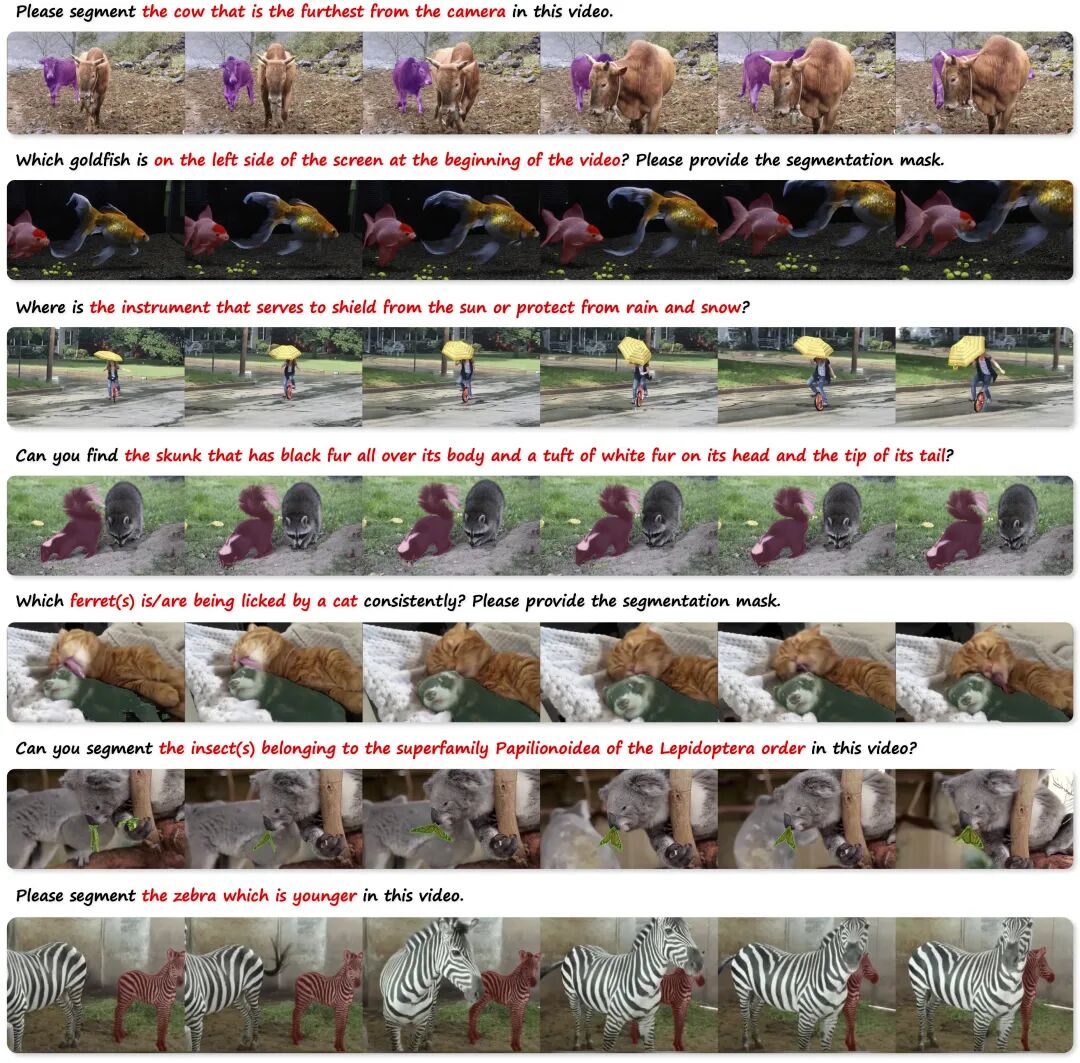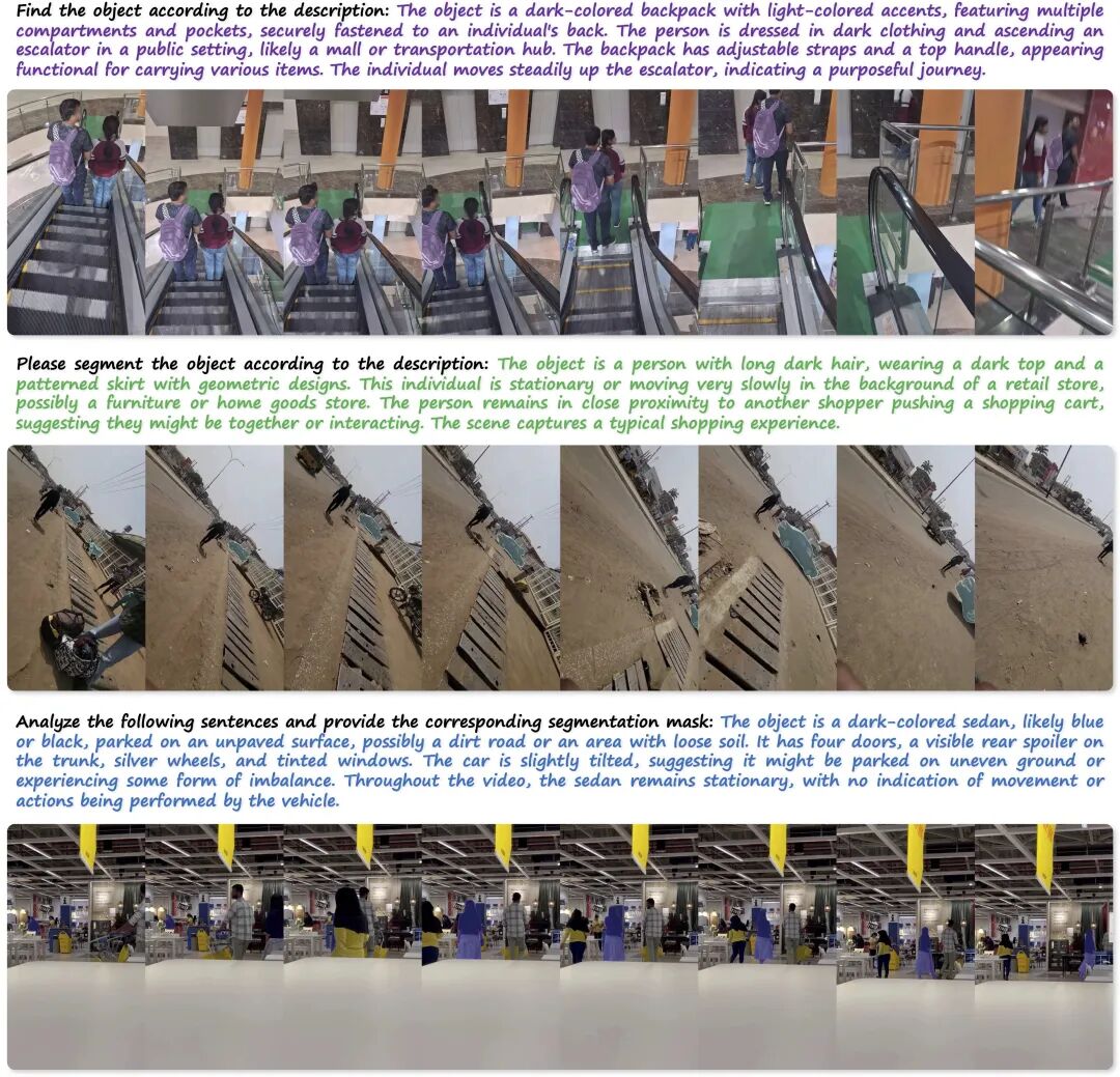 该任务要求模型根据复杂的语言描述,理解用户所指定的掩码区域,并在视频中正确解析其动态变化与语义关系。