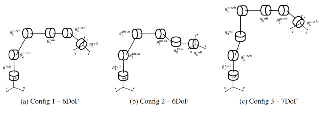 而由于逆运动学解析解的存在性(Pieper准则约束)与仿人构型的设计,当前市面上主流的6轴、7轴机械臂的关节顺序只有3种。