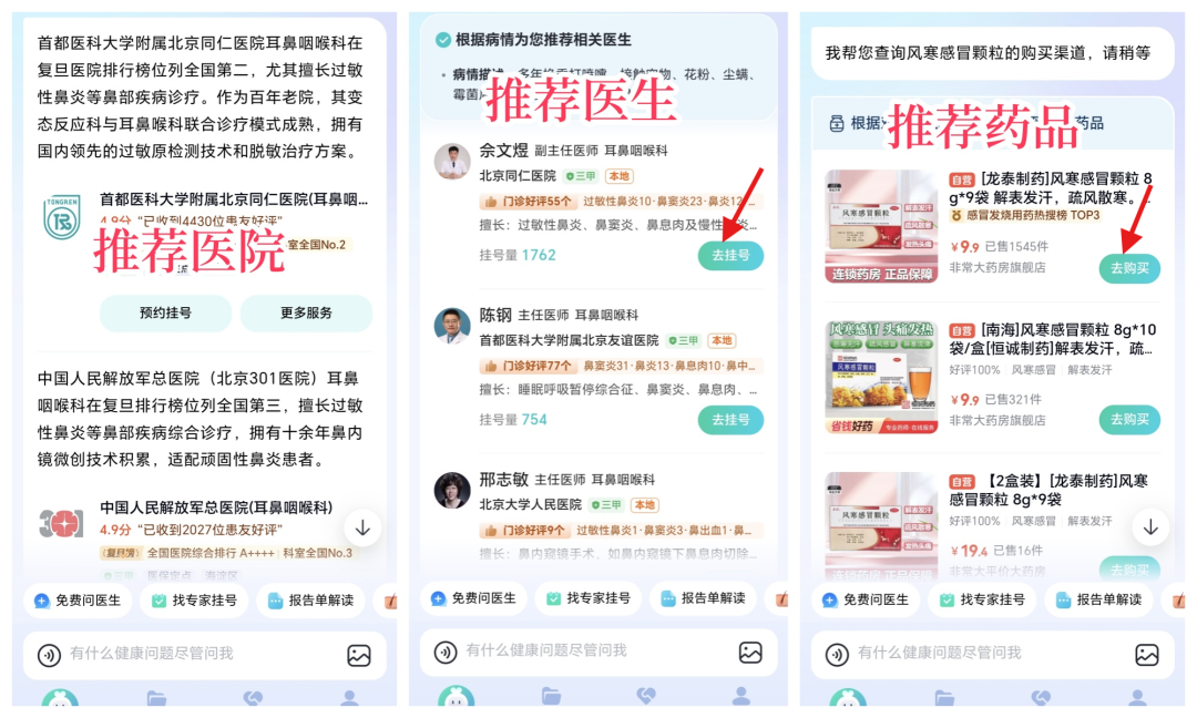 它已超越一个简单的“问答AI”,而是升级为能陪你走完完整就医旅程的智能助理——从科普问答、初步问诊,到医生推荐、挂号购药,再到档案管理、健康追踪,每一步都力求“懂你、懂病、更懂健康”。