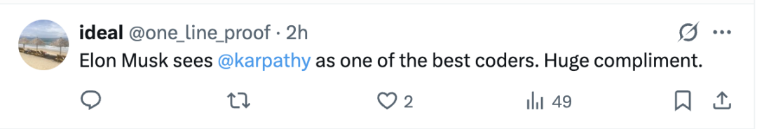 例如,就在几个小时之前,马斯克还说Grok 5将来会比卡帕西强。