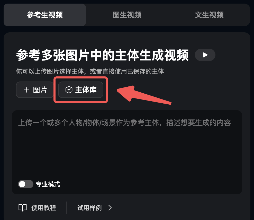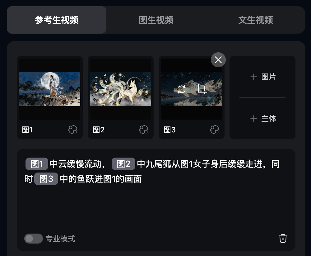 你还可以通过Vidu特有的“主体库”功能,把一个主体相关的素材(例如各种角度的照片,场景,道具等素材),打包保存起来。