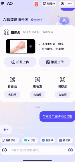 蚂蚁AQ不光支持文字问诊,它还能通过图片进行病情诊断。