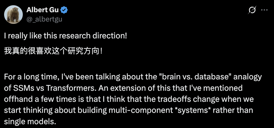 参考链接:https://x.com/_albertgu/status/1980287154883358864